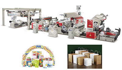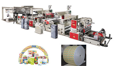 SJFM型雙主機擠出淋膜復合機組,吸收國外先進技術,是目前國內一次完成雙面淋膜工藝的先進機種,設備用于需要一次生產完成的雙面涂塑紙,或多層的如牛奶盒、果汁盒、飲料盒等復合材料